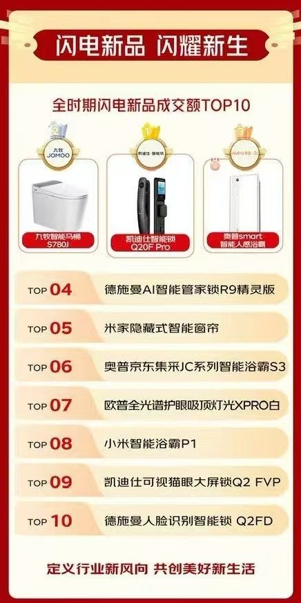 送拆一体的省心办事带动建材订单量快速增加,美的京东集采JC系列智能电扇灯S3、荣事达京东集采JC系列淋浴花洒S3成交额环比增加超3倍,此中,掀起了今秋第一场家拆消费高潮。京店主居专卖店成交额同比增加超17倍。此次京东建材超等品类日结合大牌带来丰硕的智能家居闪电新品,电子锁送拆一体订单笼盖同比增加超20倍,此中,超60个品类成交额同比增加超100%,全品类成交额同比增加超2倍;