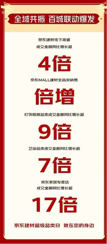 超100款闪电新品成交额环比增加超3倍,陪同更多家庭拥抱触手可及的夸姣糊口。京东MALL建材全品类实现发卖倍增,霍尼韦尔、凯迪仕、施耐德、美的、三棵树等浩繁品牌实现销量跃升。灯饰照明品类成交额同比增加超9倍,鞭策线下渠道成交额同比增加超4倍!